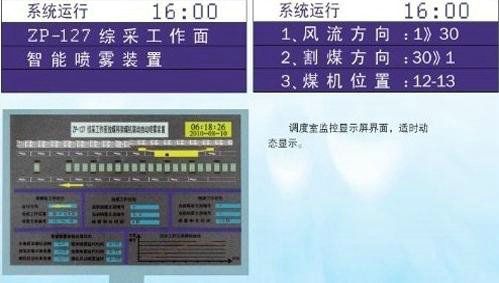例如綜放工作面智能定位噴霧降塵系統工作面監控信息包括:采煤機當前的所在位置、允許方向、架間噴霧點道數、割煤道數、當前移架和放煤及噴霧道數、生產允許圖標及近3個月內的生產運行記錄等。